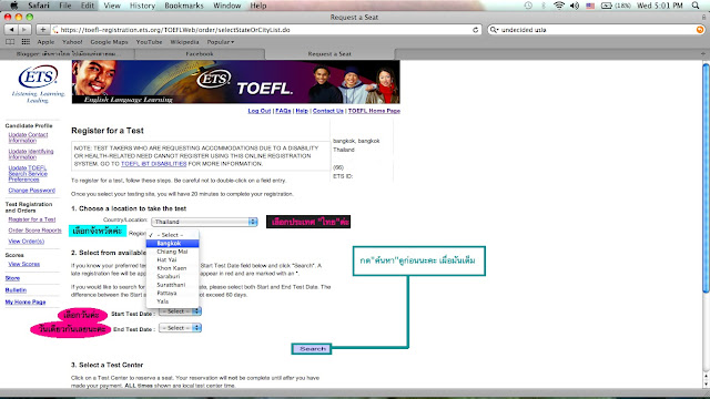 2. มองหาคำว่า TOEFL iBT® Test แล้วมองลงไปเรื่อยๆจะเจอคำว่า Register for the Test