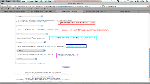 17. เขาจะถามว่าเอาผลคะแนน TOEFL ไปทำอะไร เคยเรียนมาก่อนไหม บลาๆ