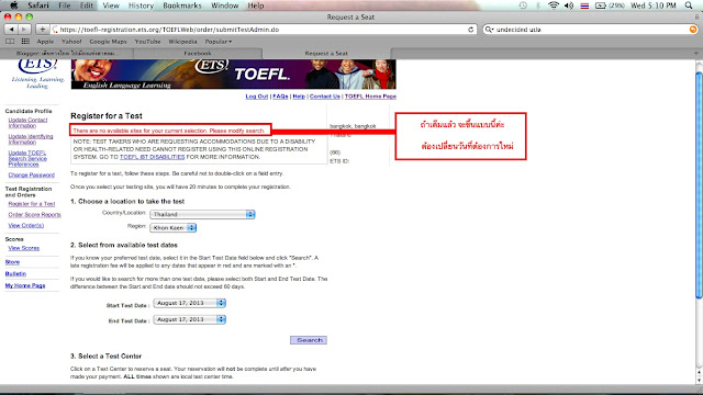 11. เลือกที่สอบ และ วันที่ต้องการสอบ