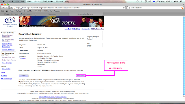 13. หน้าต่อไปจะเป็นการทวนรายละเอียดเรื่องสถานที่สอบ และเวลาที่จะสอบ