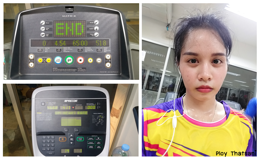 มาทดสอบการทนเหงื่อจากการออกกำลังกายกันดีกว่าค่ะ ว่าแป้งจะไม่ไหลเป็นคราบจริงไหม? ซึ่งพลอยเองชอบเข้าฟิตเนตและชอบเบิรน์ด้วยการวิ่งบนลู่วิ่งและเล่นเครื่องเล่น Elliptical ค่ะ เล่นจัดหนักไปเลยค่ะ วิ่งเป็นเวลา 65 นาที และ เล่นเครื่องเล่น Elliptical เป็นเวลา 40 นาทีค่ะ ดูรูปหลังออกกัน อาจจะไม่ชัดเจนมาก แต่บอกได้เลยว่าผ่านค่า!!! ไม่มีคราบขาวไหลมากับเหงื่อเลยแม้แต่น้อย แป้งอาจจะมีหลุดเลือนไปบ้างเล็กน้อย แต่หน้าก็ยังเป๊ะอยู่ค่ะ