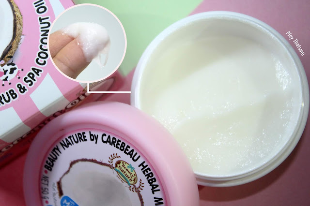 สครับเฮอร์เบิล มิลค์กี้ สครับ แอนด์ สปา สูตรโคโคนัท ออยล์ หรือ สูตรน้ำมันมะพร้าวนั่นเองค่ะ สูตรนี้จะมีสรรพคุณที่ช่วยบำรุงผิวให้แข็งแรง ลดความหยาบกร้านให้ผิวเนียนนุ่ม ชุ่มชื่น และกระจ่างใสค่ะ เนื้อสครับของสูตรนี้จะเป็นเนื้อสครับสีขาวเนียนละเอียดมากๆ และมีกลิ่นหอมจากน้ำมันมะพร้าวและน้ำนมค่ะ
