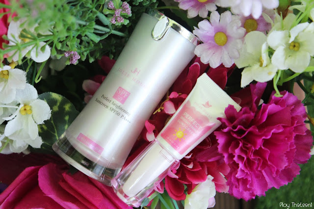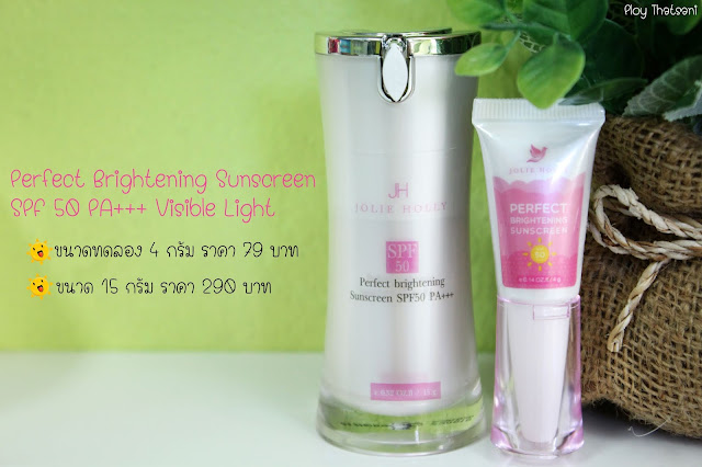 สำหรับครีมกันแดด Perfect Brightening Sunscreen SPF 50 PA+++ Visible Light มาพร้อมกับแพ็คเกจสีขาวชมพูแบ๊วๆ น่ารักมุ้งมิ้ง มีด้วยกัน 2 ขนาดนะคะ คือ ขนาดทดลอง 4 กรัม ราคา 79 บาท และ ขนาด 15 กรัม ราคา 290 บาทค่ะ