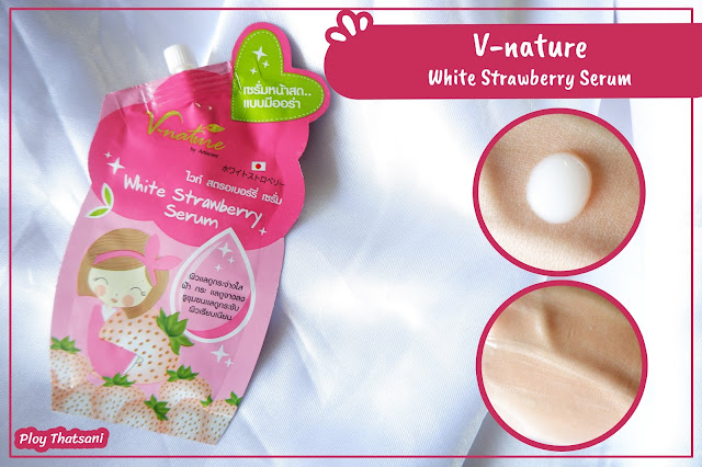 เซรั่มสตรอเบอร์รี่ขาวแบรนด์ V-Nature ค่ะ ซึ่งซองนี้ยังไม่มีขายใน 7-11 นะจ๊ะ พลอยซื้อมาจากใน Tops เน้อ ตัวนี้เขาเป็นเซรั่มที่ช่วยกระชับรูขุมขน ให้ผิวเรียบเนียนกระจ่างใสอย่างเป็นธรรมชาติ แรกๆที่ซื้อเนี่ยเพราะชอบแพคเก็จนะทุกคน แต่พอใช้ไปใช้มาก็ดีอยู่น๊า เนื้อเซรั่มกลิ่นบางๆ เกลี่ยง่าย แต่มันแอบเหนอะนิดนึง เลยมักจะชอบเอามาทาเวลาอยู่ในห้องแอร์ ทาทับเมคอัพไปเลยค่า เออ...หน้าก็ไม่ค่อยมันเพิ่มนะ รู้สึกผิวชุ่มชื้นดีค่ะ และที่สำคัญพอลองเอามาทาบริเวณข้อศอกหรือหัวเข่างี้ กลับได้ผลดีเฉยเลย 5555 ผิวเนียนเรียบเลย ชอบค่ะแบบนี้