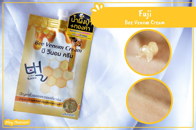 ครีมน้ำผึ้งป่าผสมทองคำแบรนด์ฟูจิค่า ตัวนี้เป็นครีมซองที่ไม่ได้มีสรรพคุณที่ช่วยให้ผิวหน้าขาวหรืออะไรมากมายนะ แต่จะเน้นช่วยลดปัญหาริ้วรอยมากกว่า เอาง่ายๆเลยคือพลอยเอามาทาใต้รอบดวงตาแทน มันช่วยอยู่นะทุกคน แล้วผิวใต้รอบดวงตาเนี่ย มันดูชุ่มชื้นดูตึงๆขึ้นเลยนะ เนื้อเจลสีเหลืองใส มีเกล็ดทองคำเล็กๆๆๆๆเต็มไปหมด กลิ่นน้ำผึ้งหอมมาก ขอบอกกก พอนำมาทาหน้าแล้วจะดูวิ้งค์ๆ ประหนึ่งเหมือนทาบลัชออนประกายชิมเมอร์ยังไงยังงั้นเลยล่ะ ใครไม่ชอบ แต่พลอยชอบค่า อิอิ