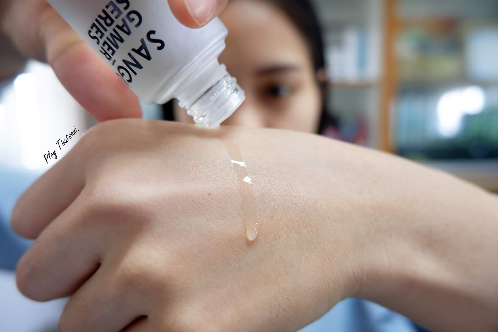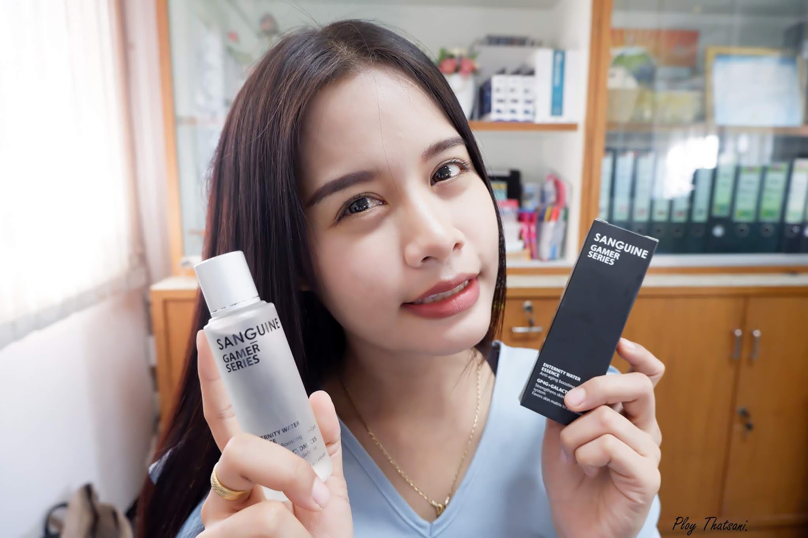 ด้วย Lifestyle การทำงานของพลอยต้องจดๆจ้องๆอยู่หน้าจอคอมพิวเตอร์ทุกวันแทบจะตลอดเวลา ทำให้นอกจากจะมีอาการปวดตาแล้ว ยังมีปัญหาผิวโดนทำร้ายจากแสงสีฟ้าของจอคอมพิวเตอร์อีก ซึ่งพลอยเป็นคนผิวผสมนะ มักจะมีสภาพผิวที่มันง่ายช่วงทีโซนอยู่แล้ว และพอเจอปัญหาแบบนี้ยิ่งทำให้เกิดความมันเพิ่มเข้าไปอีก!! ยังค่ะ...ยังไม่จบ ด้วยความที่ห้องทำงานของพลอยนั้นเป็นห้อง Server จึงต้องเปิดแอร์ตลอดเวลา ซึ่งพอโดนอากาศเย็นๆเป็นเวลานาน จึงทำให้เกิดผิวแห้งง่ายช่วงบริเวณแก้มอีก เฮ้อออ แต่...ก็อย่างว่าแหละค่ะมันเป็นเรื่องที่เลี่ยงได้ค่อนข้างลำบากเนอะ เพราะฉะนั้นพลอยเลยต้องมีตัวช่วยอย่าง SANGUINE Eternity Water Essence มาเป็นผู้ช่วยกอบกู้ปัญหาผิวดังกล่าวค่ะ