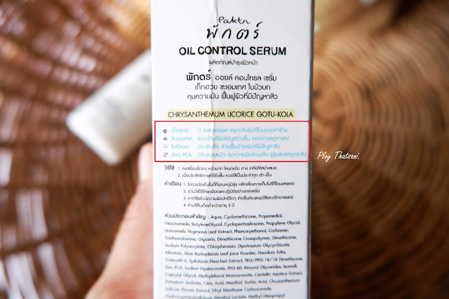 ซึ่ง Paktr Oil Control Serum เซรั่มคุมมัน ขวดนี้เขามีสรรพคุณที่ช่วยฟื้นฟูผิวที่มีปัญหาสิว ลดรอยสิวรอยดำให้จางลง ช่วยควบคุมความมันบนผิว ลดหน้ามัน และยังช่วยปรับผิวให้ดูกระจ่างใส รูขุมขนกระชับ ผิวดูชุ่มชื้นอิ่มน้ำ ดูสุขภาพดี เปล่งปลั่งและยังช่วยฟื้นฟูปัญหาผิวต่างๆของสาวๆที่มีผิวแพ้ง่ายด้วยน๊า