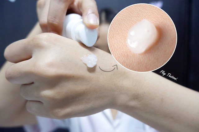 เนื้อเซรั่มสีขาวขุ่นเข้มข้น แต่มีความบางเบามากๆ และแทบไม่มีกลิ่นให้กวนใจเลยนะ