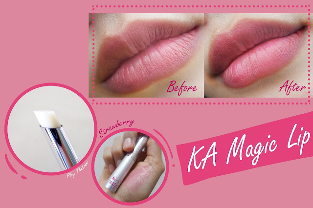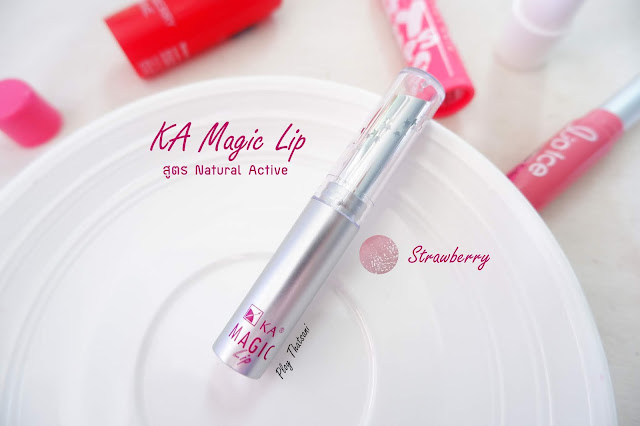 สำหรับ KA Magic Lip เป็นลิปมันเปลี่ยนสีที่ราคาดีต่อใจเว่อร์ๆ เรียกว่าถูกที่สุดในเชลล์ 7-11 ก็ได้ แพ็กเกจสีเงินดูเรียบแต่เก๋นะจ๊ะ ปลอกฝาพิมพ์ลายล้อมดาวแบบน่ารักๆ น่าพกพาดีค่ะ เค้าเคลมว่าแท่งนี้มี Double Moisturizer ถึง 2 เท่าเลยเน้อ ก็จะช่วยเรื่องความชุ่มชื่น ไม่แห้งแตกหรือลอกเป็นขุยค่ะ อันนี้ตอบโจทย์พลอยเลย เขาจะมีด้วยกัน 2 กลิ่นนะคะ คือ กลิ่นสตรอเบอร์รี่และกลิ่นเพียว ใน 7-11 มีขายเฉพาะกลิ่นสตรอเบอร์รี่นะคะ