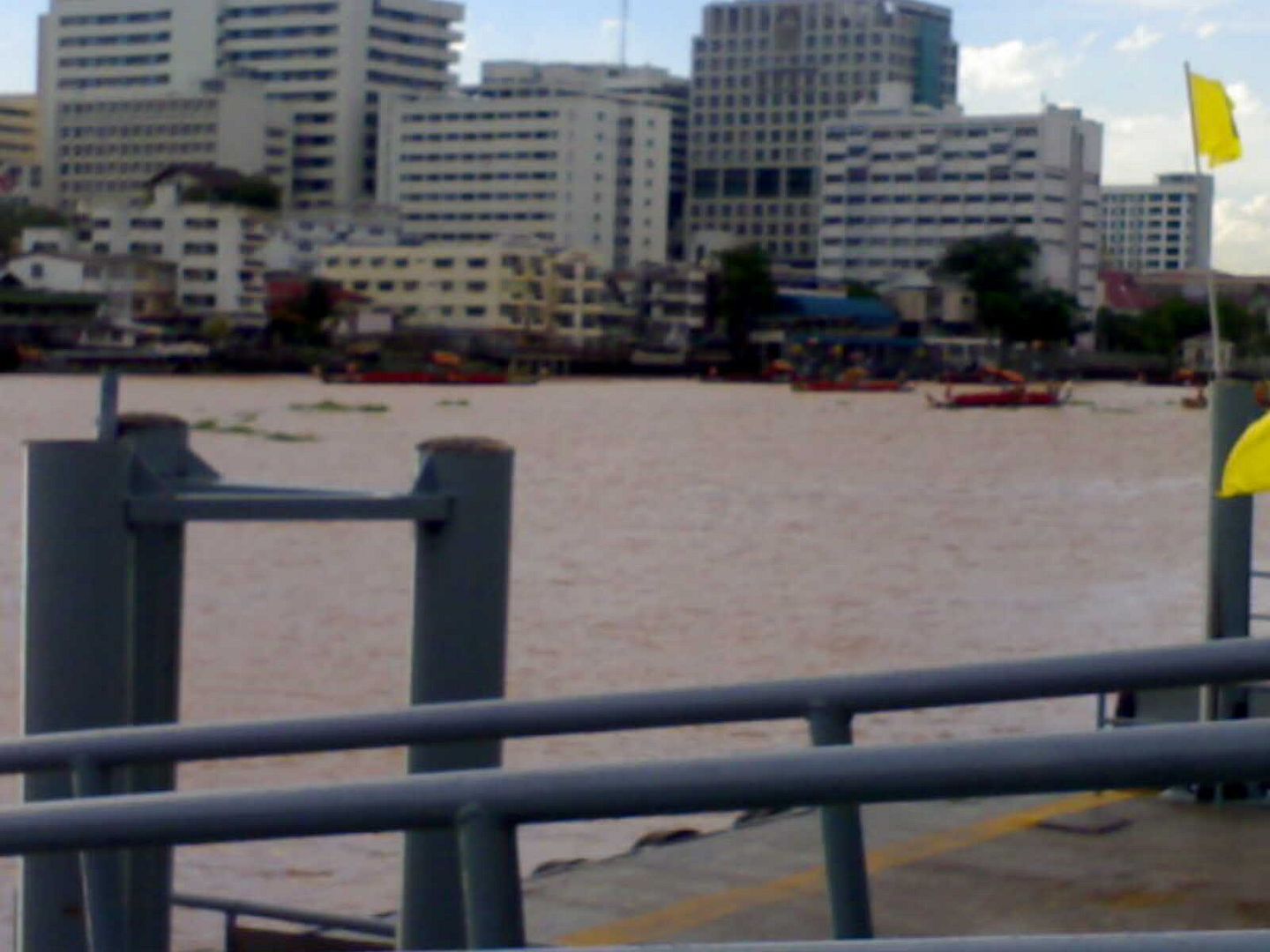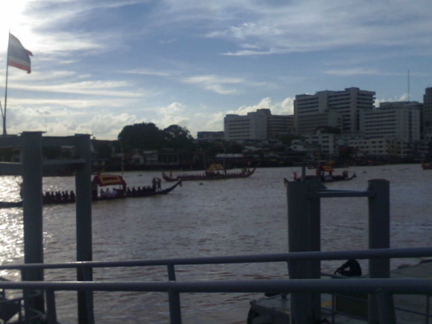ถึงจะถ่ายในมุมที่ไม่ได้ดี แต่แม่น้ำเจ้าพระยาเป็นประกายสวยงาม ฉากหลังเรือที่แล่นไปเป็นเงาดำนิดๆ