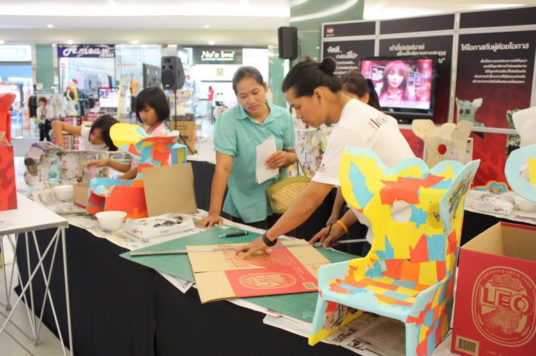 อันนี้เป็นภาพ Booth หลังจากทีทีมงานเจ้าเบ็นเตรียมการเสร็จ รอ 7 สาวลีโอและน้องๆ จิตอาสามาช่วยกันทำเก้าอี้ค่ะ