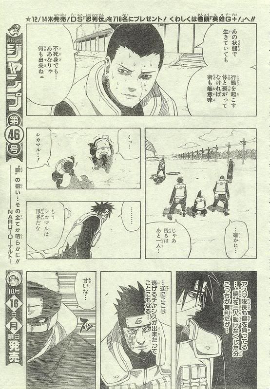 ชิกามารุ : แฮ่ก ๆ !! ถ้ามันเป็นอมตะจริงก้อน่าจะมีชีวิตอยู่โดยสภาพไร้ร่างกายได้ แต่ยังไงมันต้องการร่างกลับมา .... คาถาจะไร้ผลต่อเมื่อร่างกาย