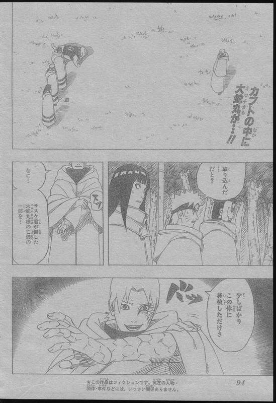 คาบูโตะ : ตกใจทำไมกัน... ชั้นก็แค่เอาส่วนของท่านโอโรจิมารุที่ยังเหลืออยู่หลังจากซาสึเกะคุงฆ่าเขา...