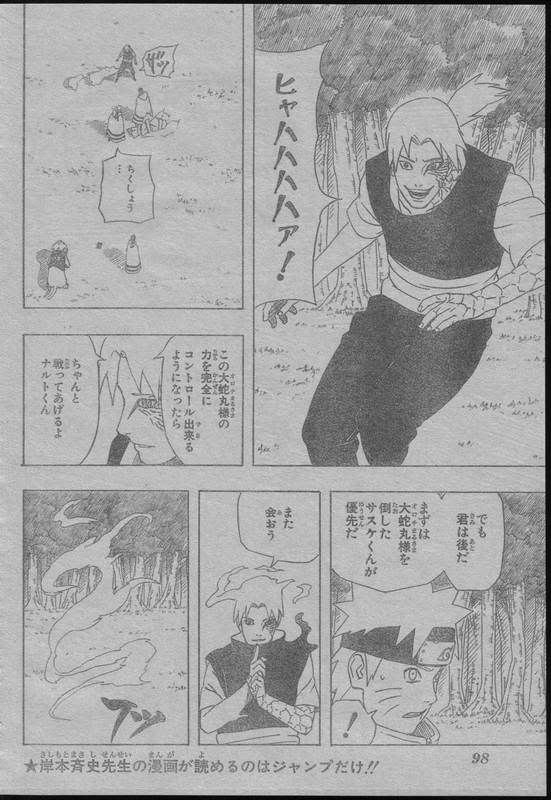 คาบูโตะ : หลังจากที่ชั้นสามารถควบคุมพลังของท่านโอโรจิมารุได้ทั้งหมด... ชั้นจะกลับมาสู้กับเธอ นารูโตะคุง