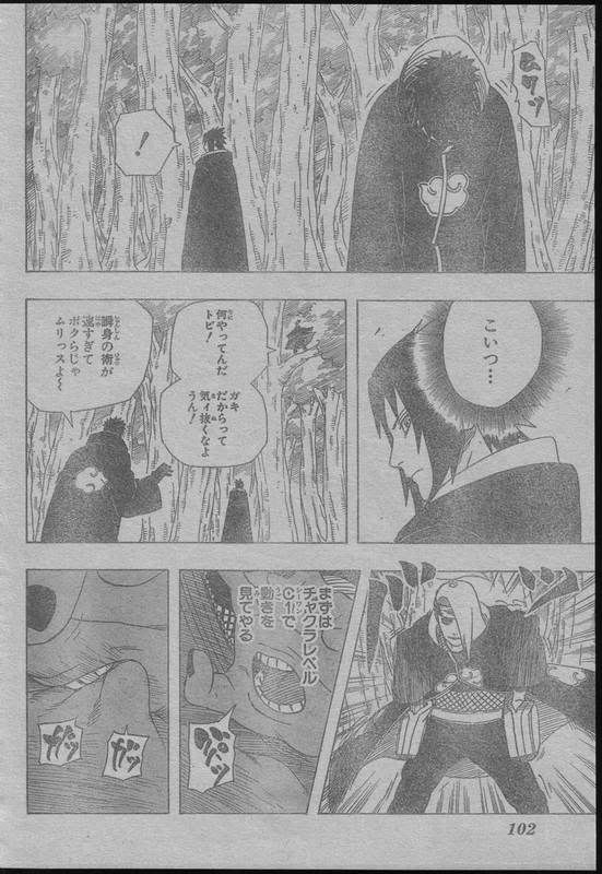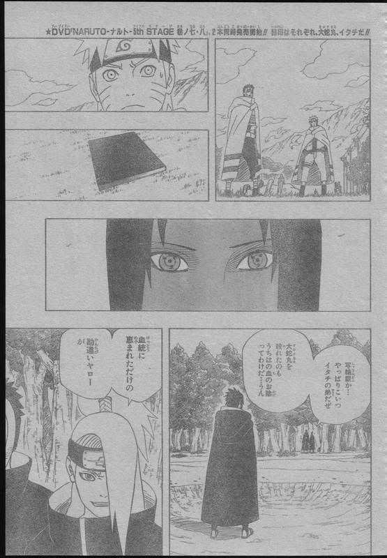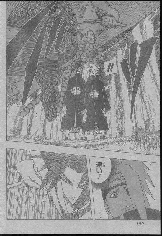 เดอิดาระ : อ่า เนตรวงแหวน... แน่สิก็เป็นน้องชายของอิทาจิ... และเหตุผลสำคัญที่เขาฆ่าโอโรจิมารุได้ก็เพราะสายเลือดอุจิวะนั่น... อืมม์