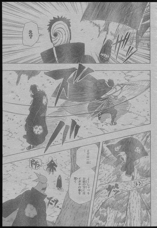 ซาสึเกะ : เสร็จไปหนึ่ง... ส่วนนายดูพูดมากเหมือนกันนี่ งั้นชั้นจะขอถามนายเกี่ยวกับอิทาจิ