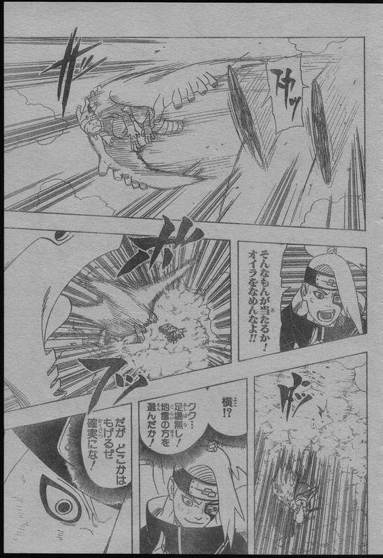 เดอิดาระ : นั่นมันคล้ายการโจมตีของคาคาชิเลยนี่ ! ใช้การแปลงลักษณะให้ยืดความยาวมันมาเรื่อยๆ ช่างคิดจริง !