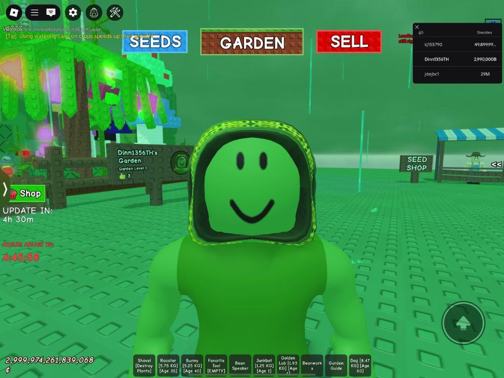 เมื่อคุณได้ทำ อีเวนท์กับ เจ้าของเกมปลูกสวนใน Roblox และคุณได้รับ admin command และ คุณจะสามารถทำอะไรก็ได้ คุณได้ซื้อ admin command ในราคา299 Roblux