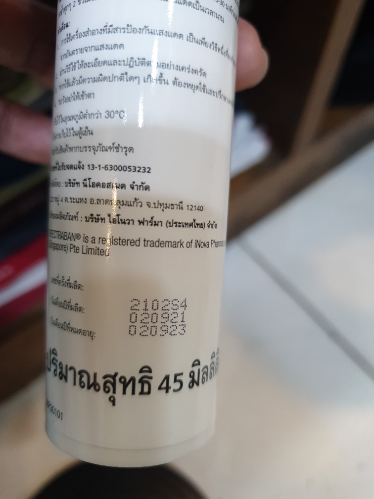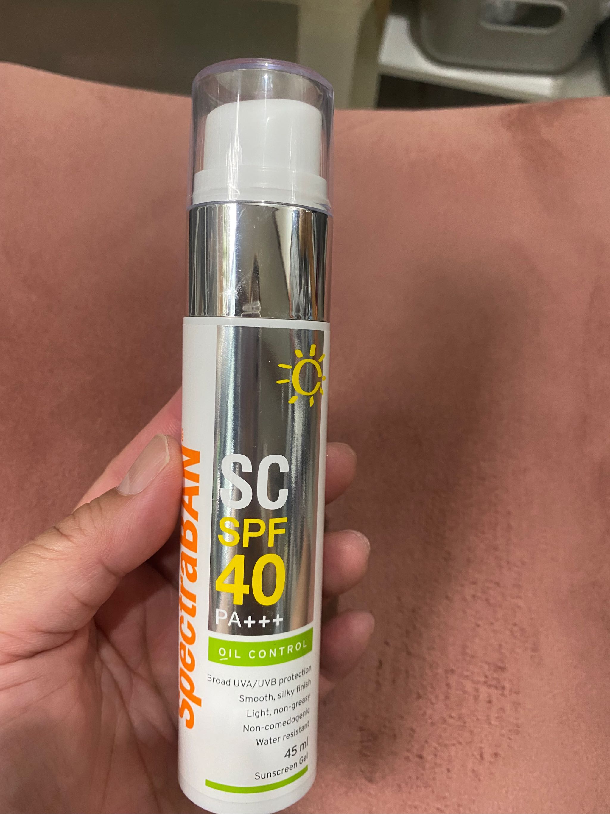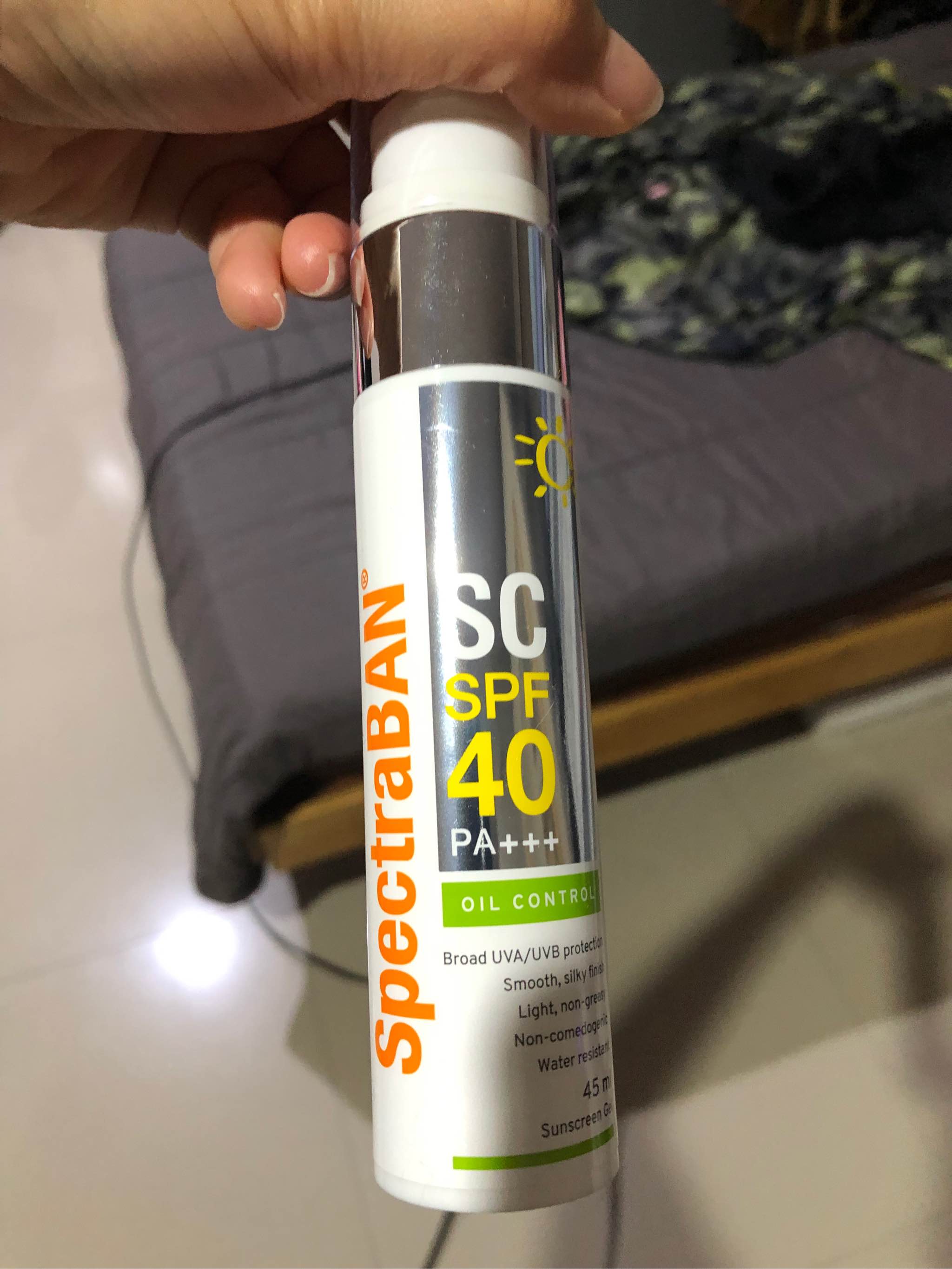 - Spectraban สเปคตร้าแบน เอสซี เอสพีเอฟ 40, PA+++ 45มล. เหมาะสำหรับผิวผสม ผิวมัน และผิวที่มีแนวโน้มเป็นสิวง่าย