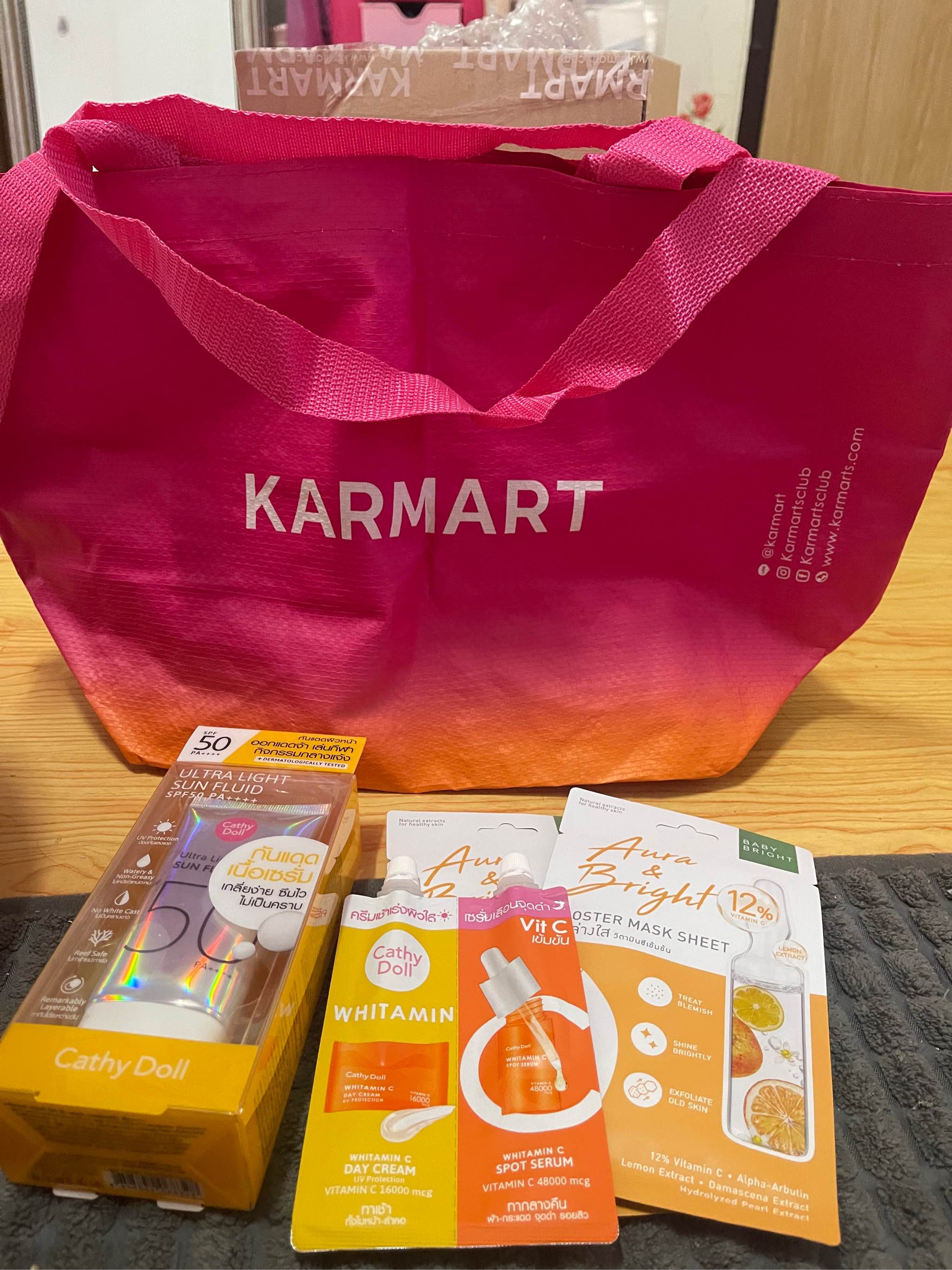 - กันแดดใช้ดี ราคาดี มีของแถม ถุงของkarmart สีสันสดใส แถมวิตามินซีให้ลองใช้ ก้อโอเคนะ เนื้อกันแดดดี