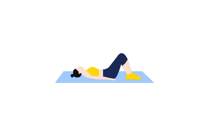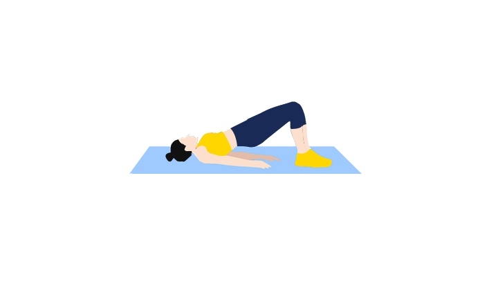 นอนราบไปบนพื้นและงอเข่าขึ้น มือวางขนานกับพื้นแนบข้างลำตัว จากนั้นยกสะโพกขึ้นและลง ทำซ้ำท่านี้จำนวน 20 ครั้ง