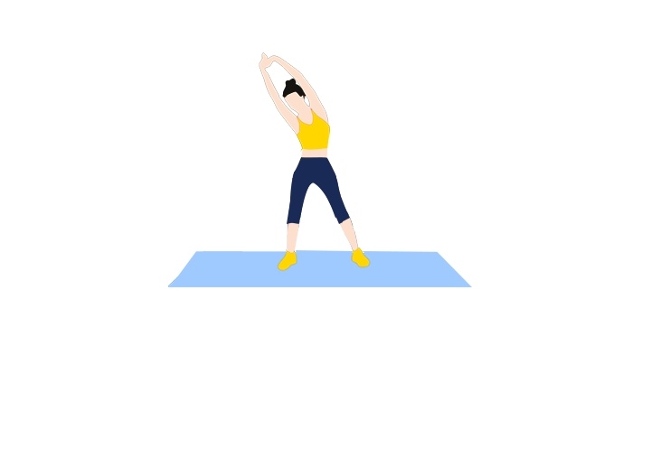 ยืนกลางขาและประสานมือไว้เหนือศีรษะ จากนั้นเอนตัวไปทางซ้ายและขวาสลับกันไป จำนวน 20 ครั้ง