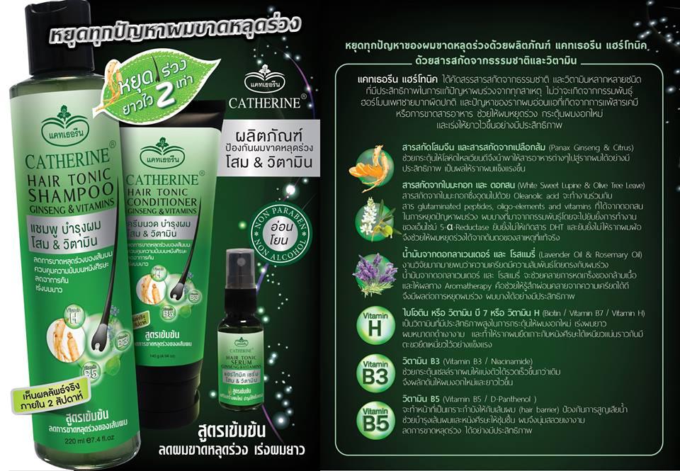 แคทเธอรีน เร่งผมยาว ป้องกันผมร่วง Catherine Hair tonic shampoo ginseng