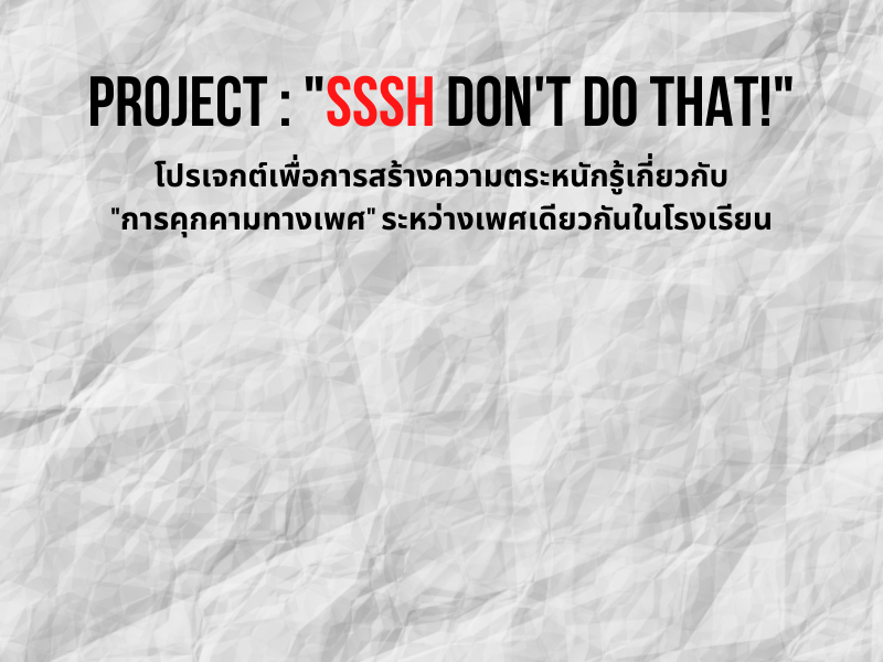 โปเจกต์เพื่อสร้างความตระหนักรู้เกี่ยวกับ "การคุกคามทางเพศระหว่างเพศเดียวกันในโรงเรียน"